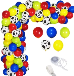 Infla los globos, (podes hacerlo en diferentes tamaño), y luego arma el arco colocando los nudos de los globos en los orificios de la cinta para arco de 5 mts.