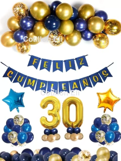 Combo CUMPLE AZUL DORADO CON ESTRELLAS