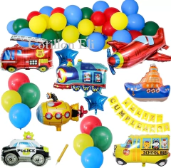 SET DECO GLOBOS METALZIADOS VEHICULOS TRANSPORTE